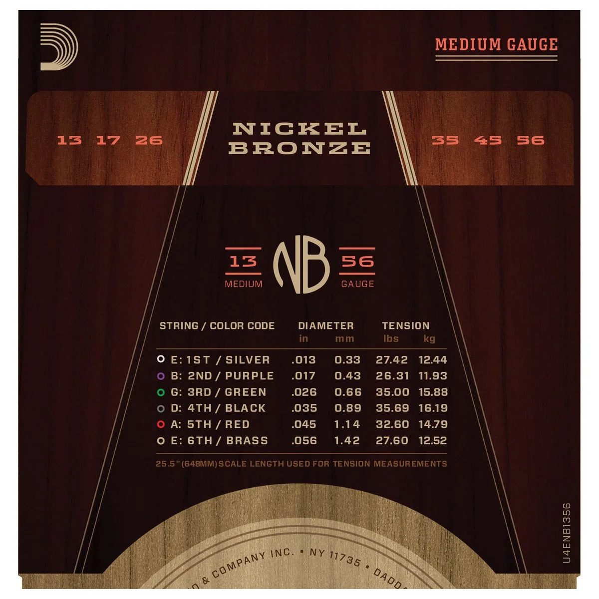 D'Addario NB1356 Nickel Bronze Acoustic Guitar Strings