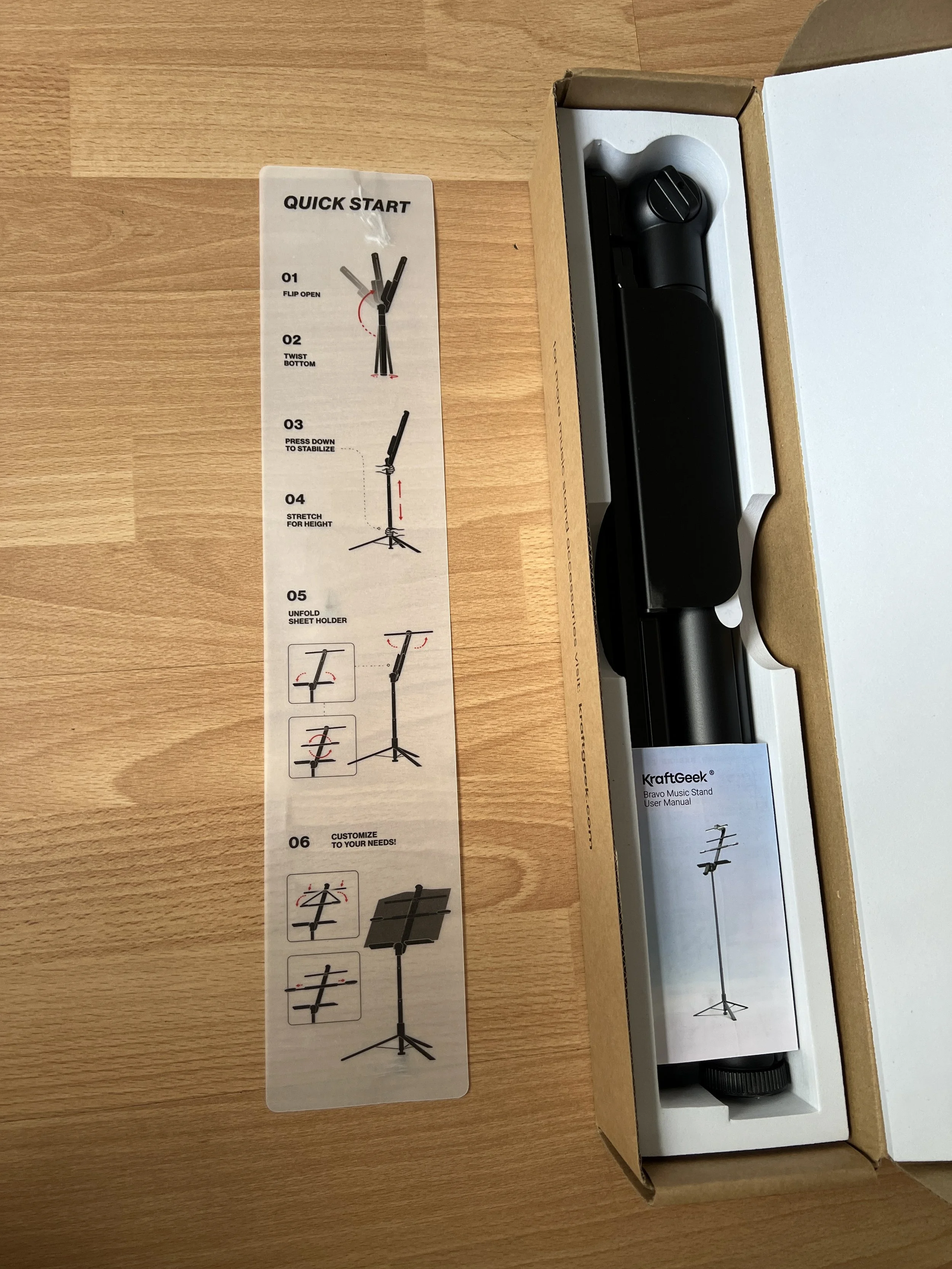 Compared with traditional music stands where parts are taken apart and assembled, the Capsule Music Stand features a foldable design with no assembly required. While the stand is well-constructed and easy to set up, its weight and reliance on a constant power source for the light may be drawbacks, although given its sleek design I would say it is steady for its weight.