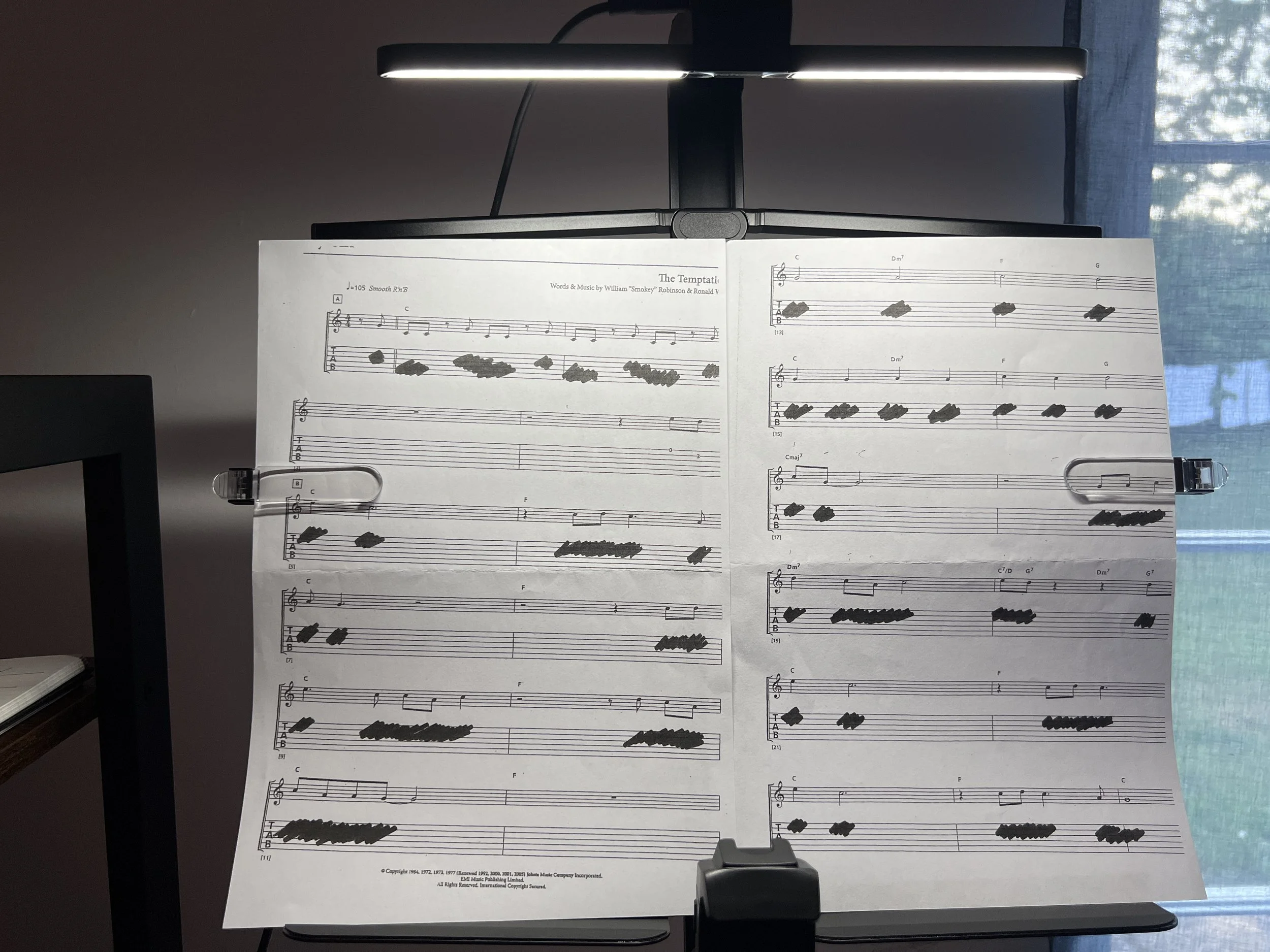 Music scores are visible due to bright light.