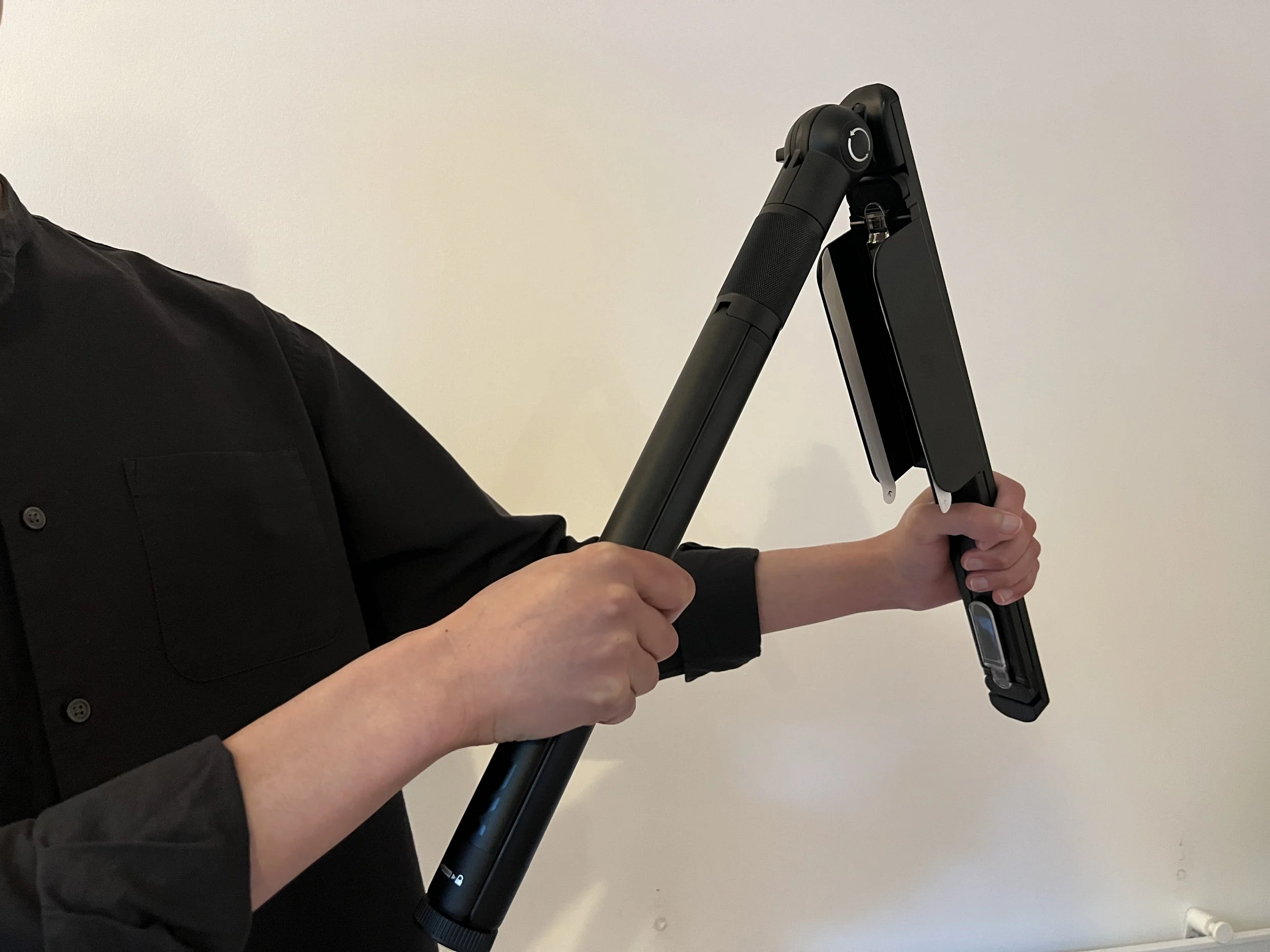 A good feature is that it can hold a phone or a tablet by expanding as you press both buttons at the same time. The entire holder also screws easily into place either at the top or bottom.
